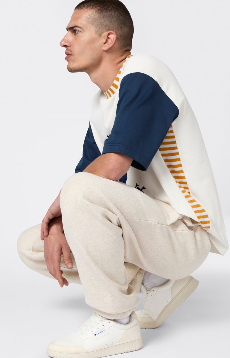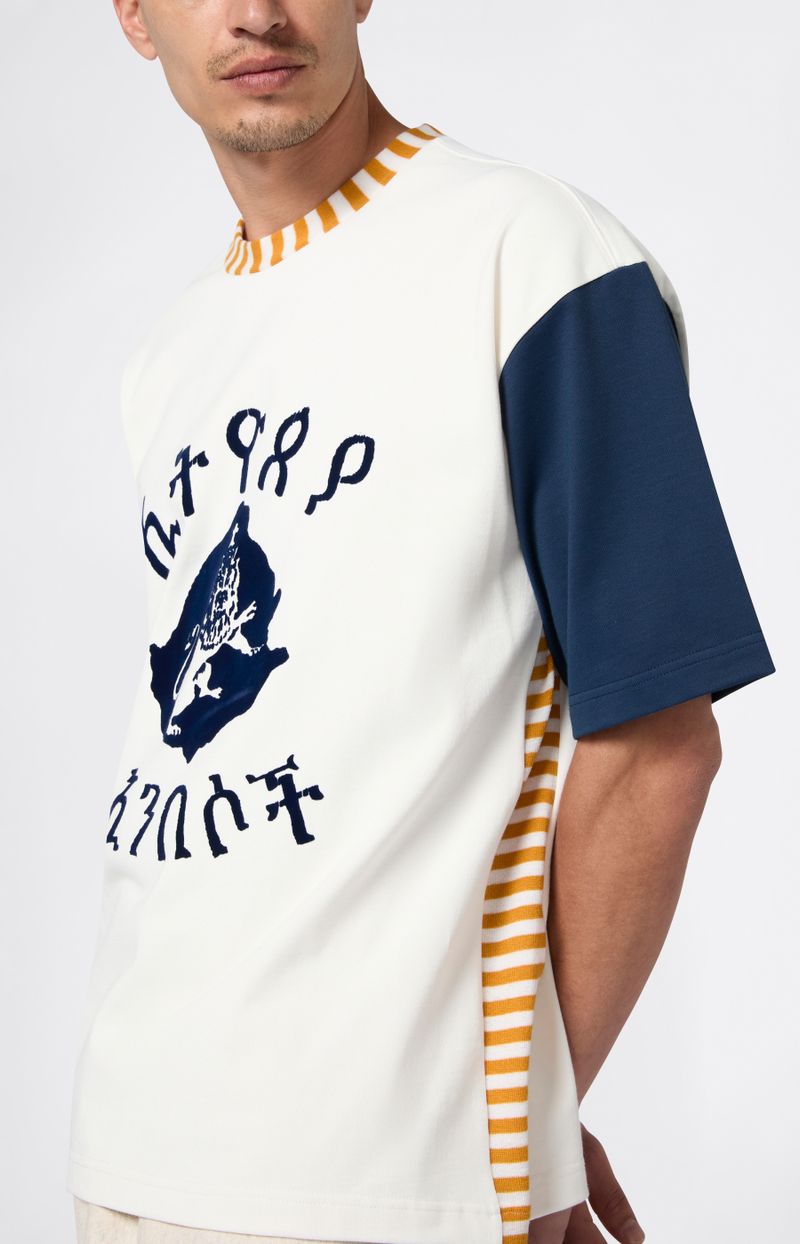 Esta camiseta con cuello redondo forma parte de la colección Island Trees de Index & Archives, que rinde homenaje a la influencia caribeña y dancehall en el estilo Champion de los años 70 y 80. Confeccionada en jersey mezcla de algodón y nailon, incluye cuello a contratono y un gráfico en el pecho. El cuello y franja lateral a rayas en contraste completan un look luminoso y auténtico, donde se fusionan vibraciones tropicales y herencia urbana.