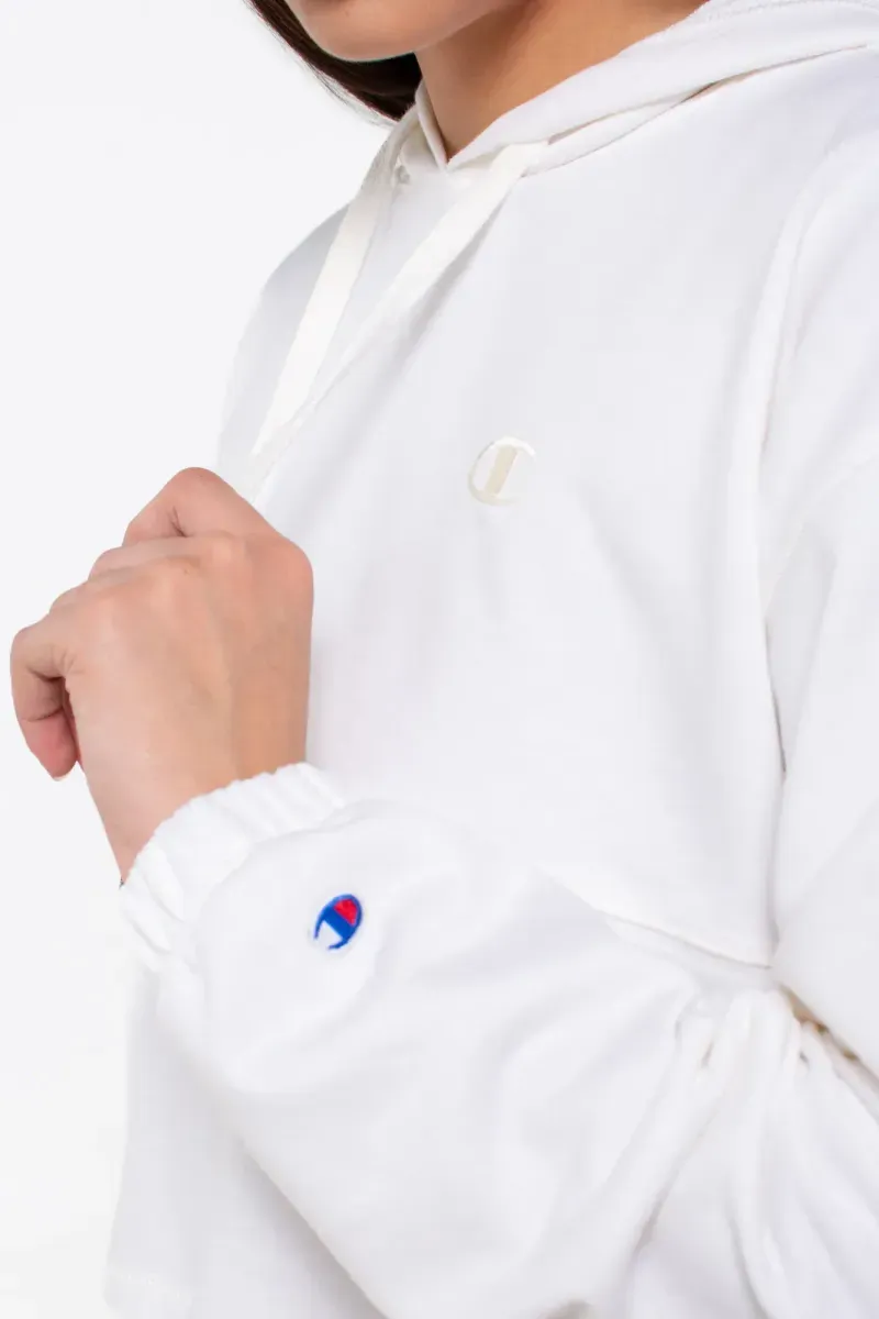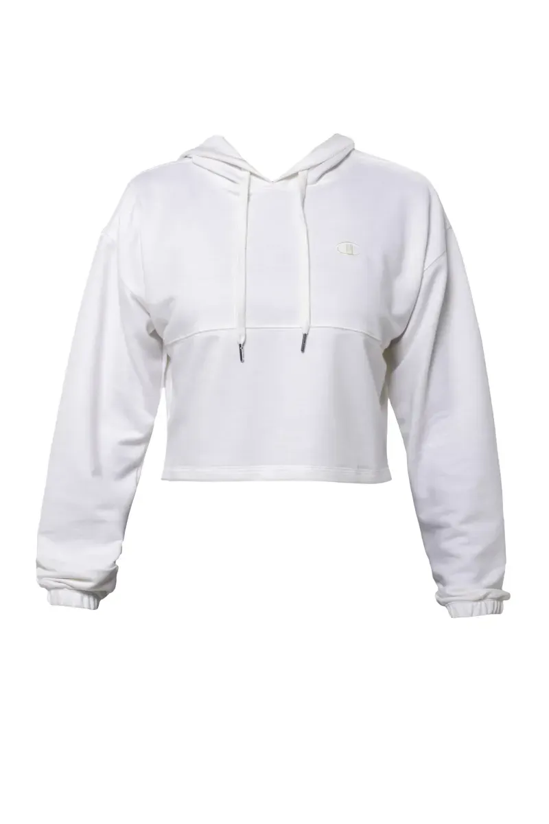 Buzo con capucha crop, con logo bordado y patch en manga