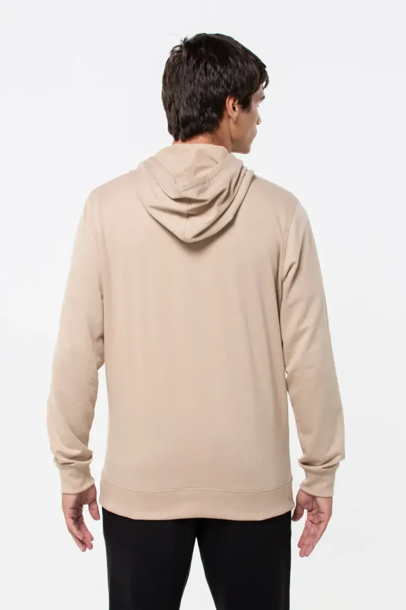 Buzo en rústico con capucha logo chico bordado con patch en manga.