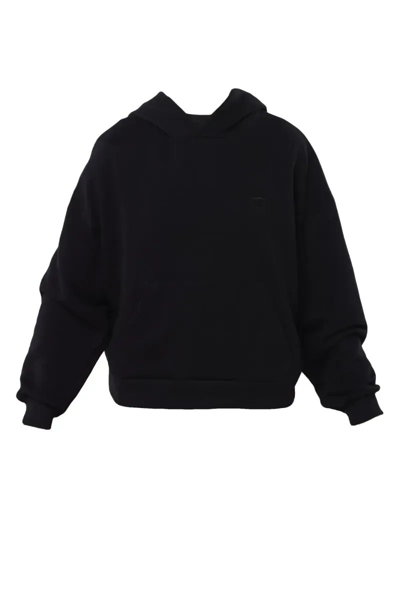 Buzo con capucha oversize con logo bordado y patch en manga.