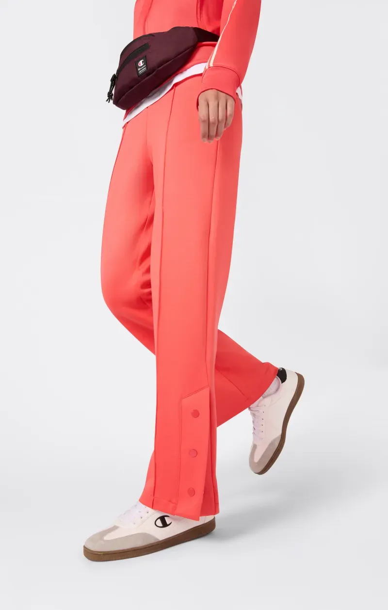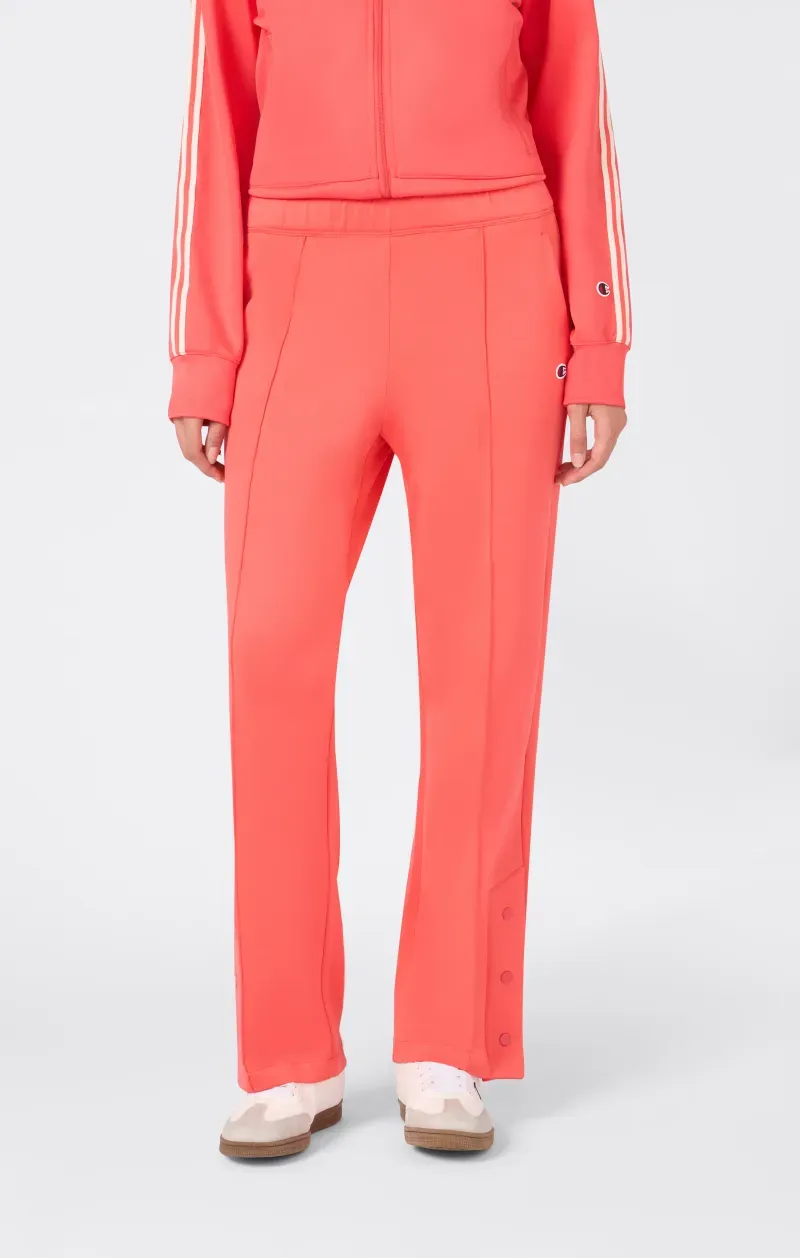 La comodidad diaria y un corte definido se combinan en estos pantalones Icons. Fabricados en interlock mate y brillante, presentan una abertura lateral en el bajo cerrada con botones, que añade un toque extra de feminidad y estilo. La cintura elástica garantiza un ajuste cómodo, mientras que el logo C bordado aporta un acento auténtico.