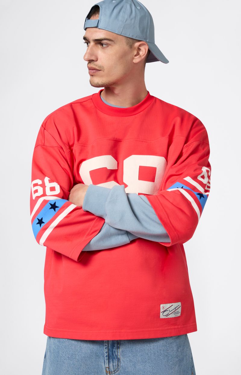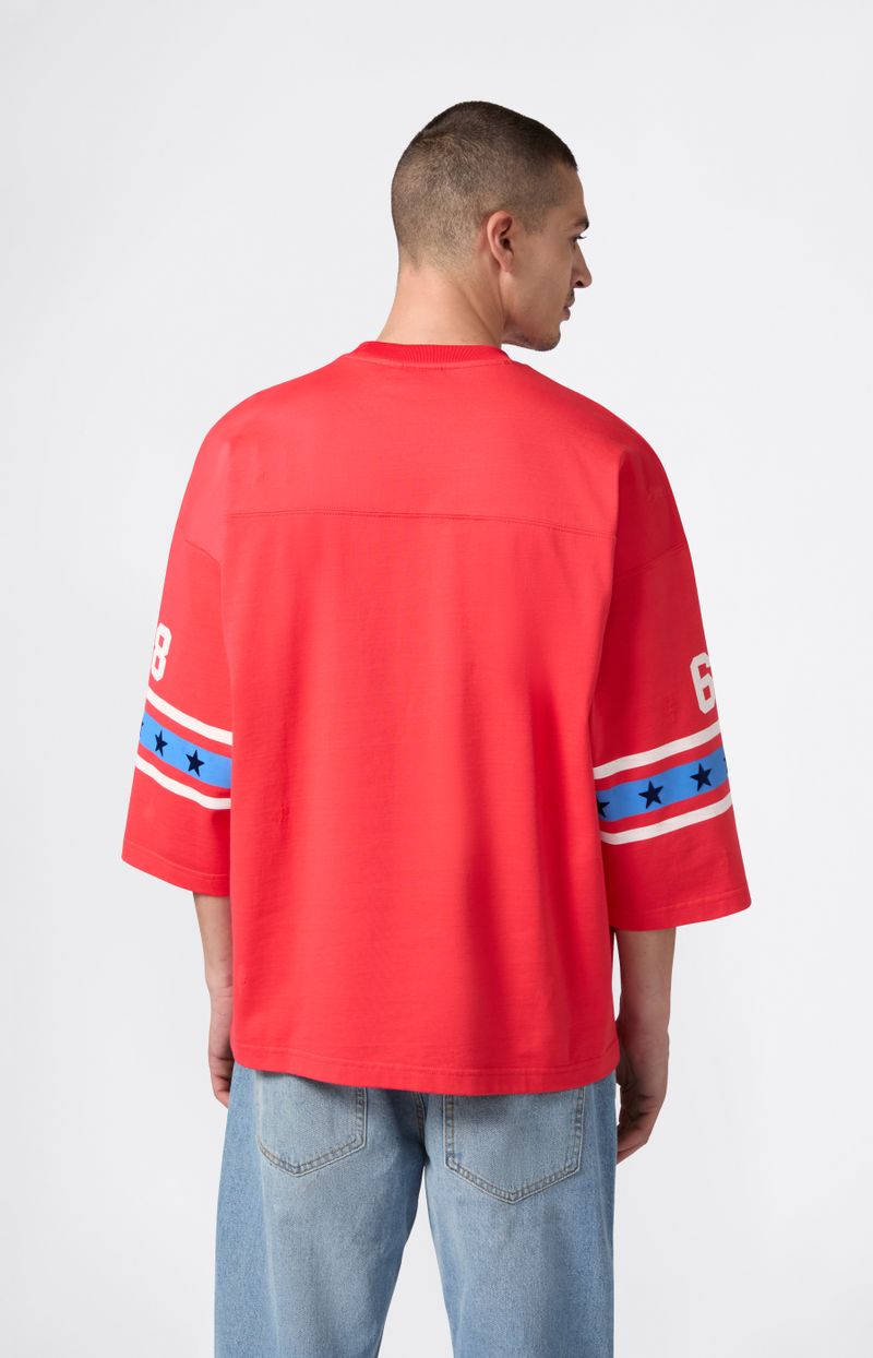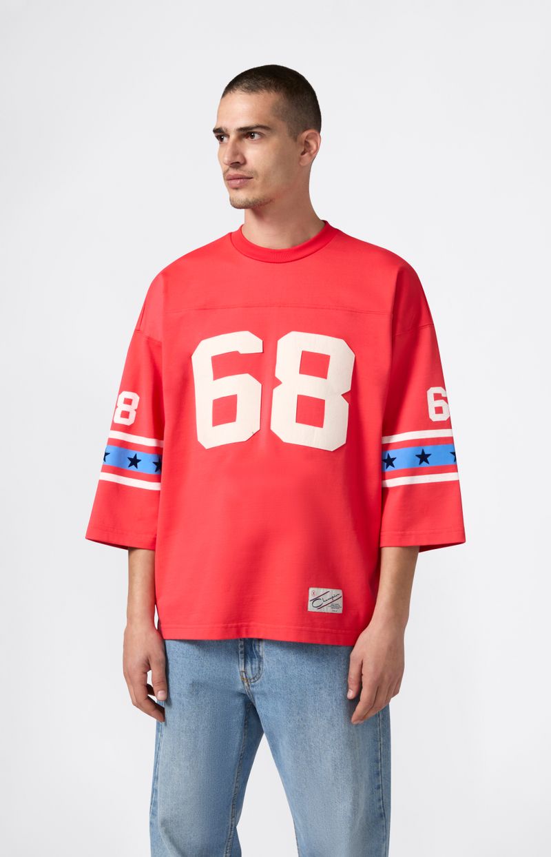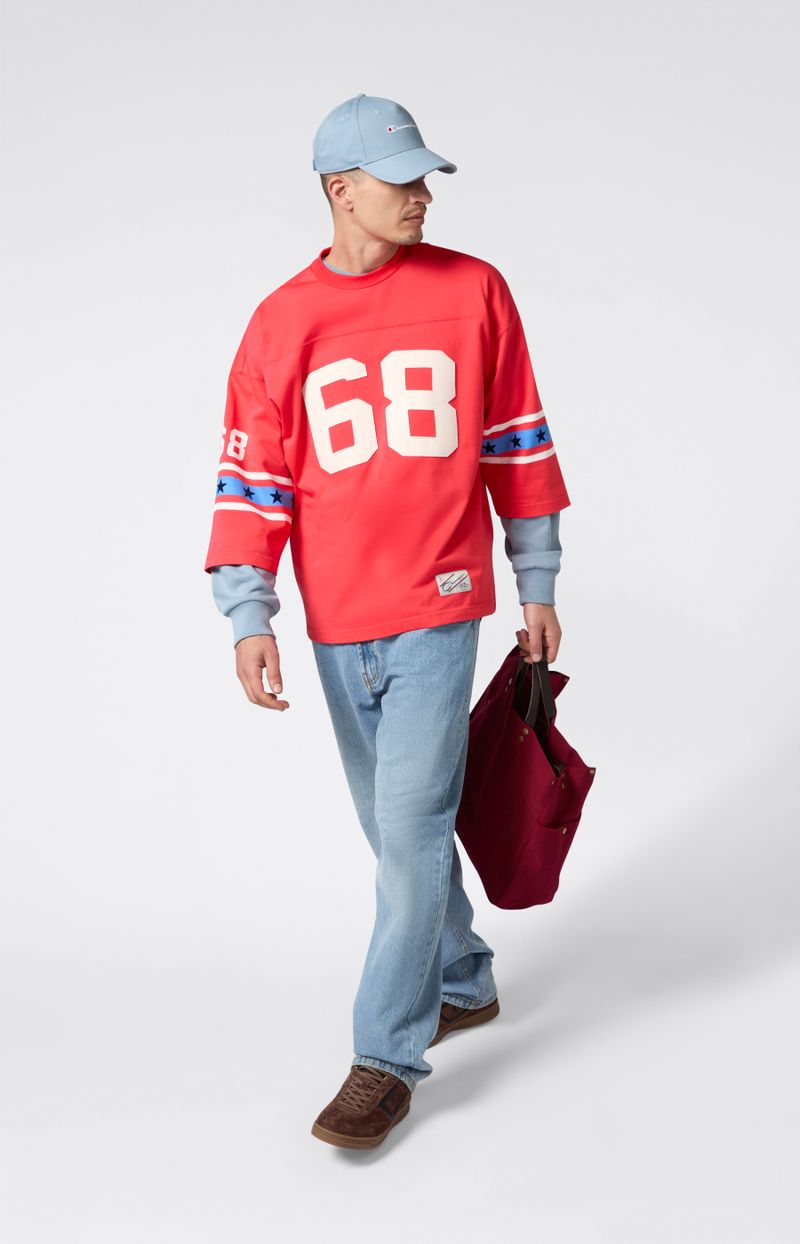 Esta remera oversize de estilo fútbol americano forma parte de la colección Index & Archives – Sunset, que reinterpreta los uniformes deportivos de los años 70 con una visión auténtica y contemporánea. Confeccionada en jersey mezcla de algodón y nailon, incluye mangas amplias, gráficos inspirados en equipos clásicos y un corte holgado ideal para el layering. Una prenda de archivo que fusiona deporte y estilo de vida.