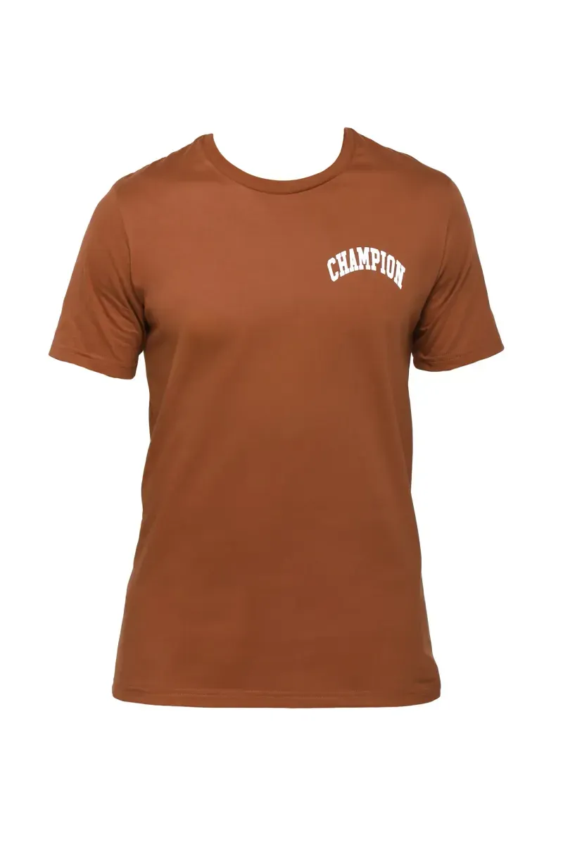 Remera cuello redondo algodón con estampa delantera y espalda, con patch en manga
