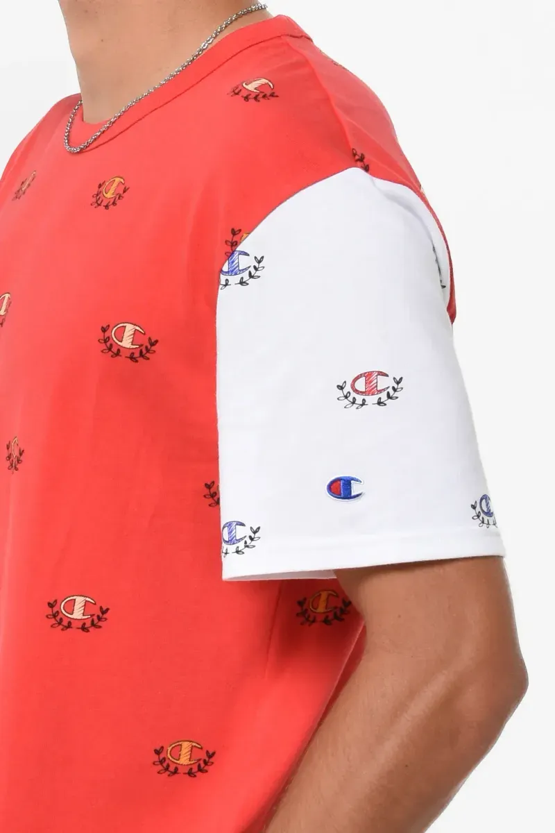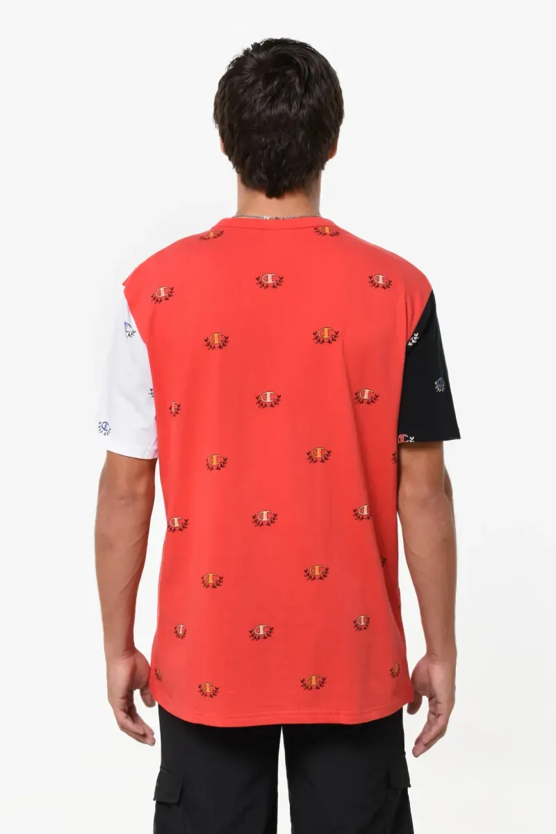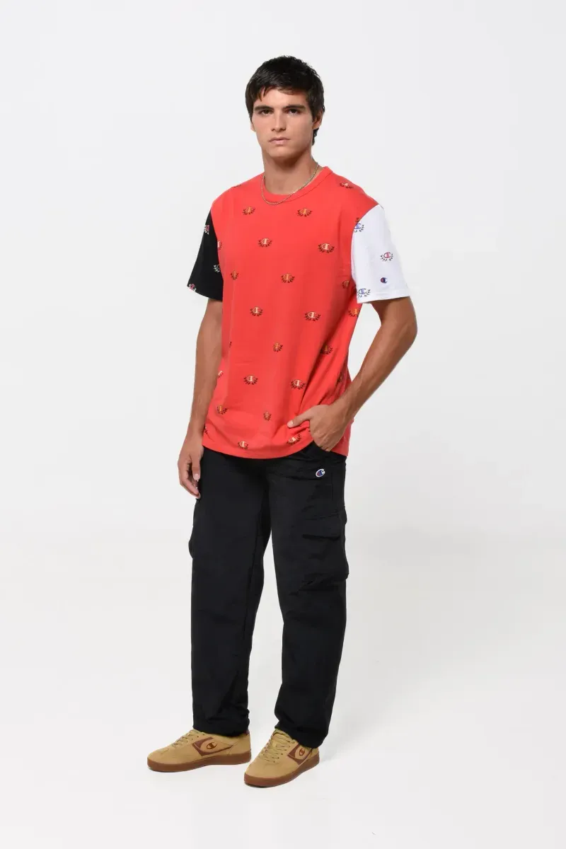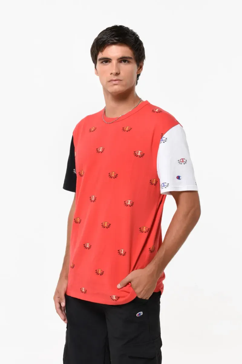 Remera cuello redondo manga corta full estampada.